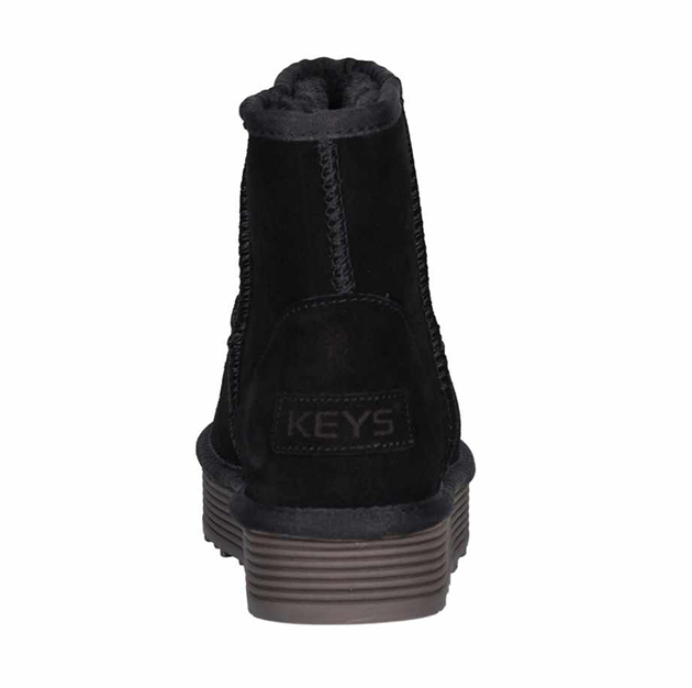 Tronchetto donna nero in camoscio, foderato con morbida e calda pelliccia ecologica. Perfetto per affrontare al meglio l’inverno, senza rinunciare al glamour della linea Keys.
