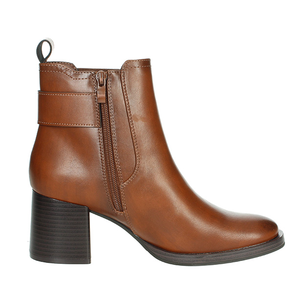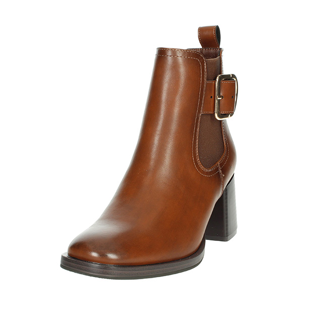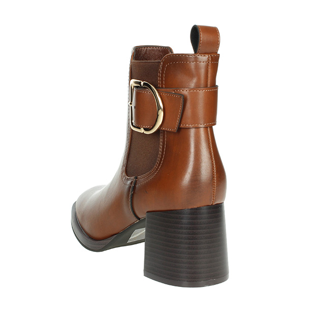 Tronchetto Donna cuoio in pelle ed ecopelle, impreziosito da fibbia ornamentale sul lato a contrasto di colore. Stile glam-chic per questa scarpa adatta ad ogni outfit.