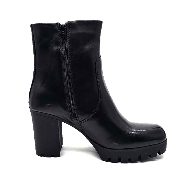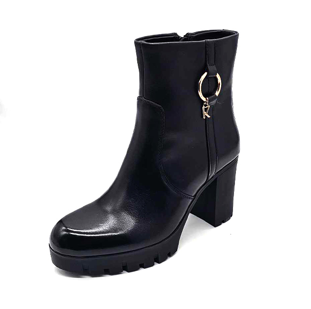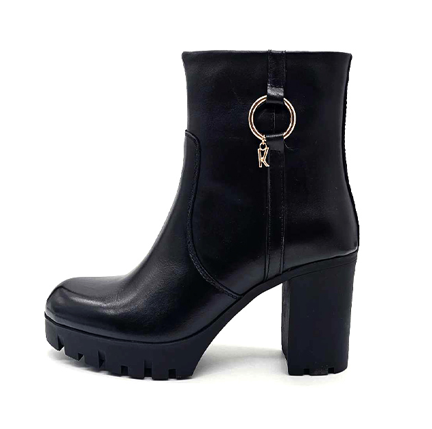 Tronchetto Donna nero in pelle, impreziosito da dettaglio gold con charm logo. Stile glam-chic per questa scarpa adatta ad ogni outfit.