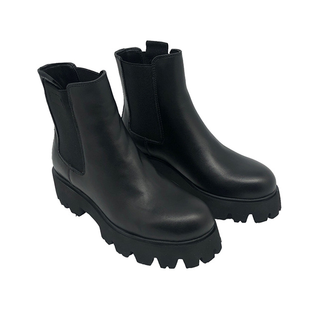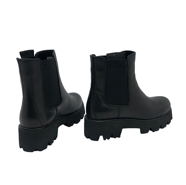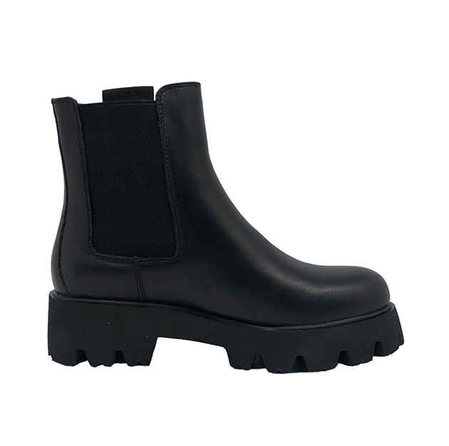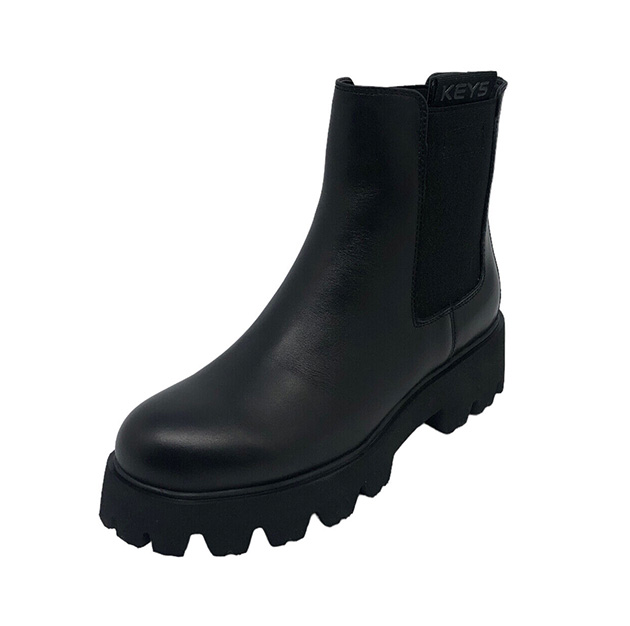 Tronchetto Donna nero in pelle, con pratica fascia elastica laterale. Sottopiede in vera pelle e fondo in gomma antiscivolo con platform. Qualitร e comoditร garantita dal Brand Italiano Keys.