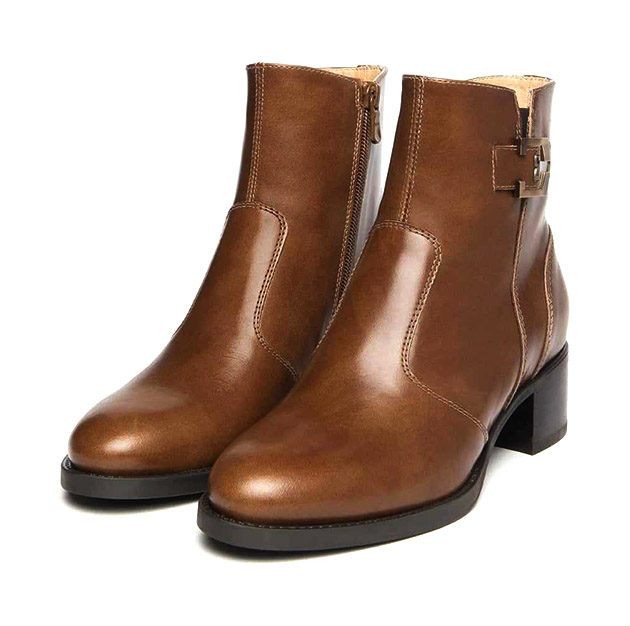 Tronchetto Donna cuoio in pelle, con logo metallico laterale. Design iconico per questo tronchetto must have del guardaroba femminile. Made in Italy.