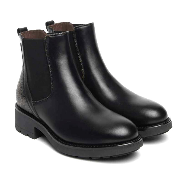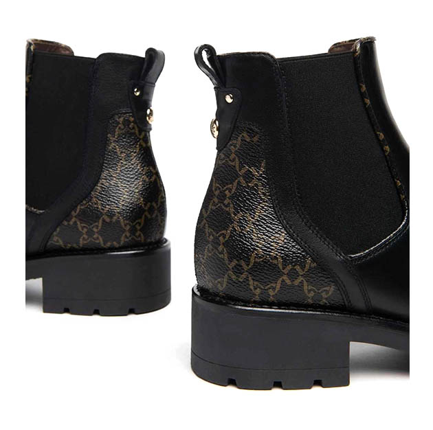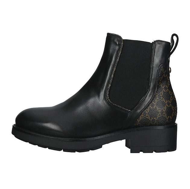 Tronchetto Donna nero in pelle, con elastici laterali e inserto loggato sul retro. Design minimal e di tendenza. Made in Italy.
