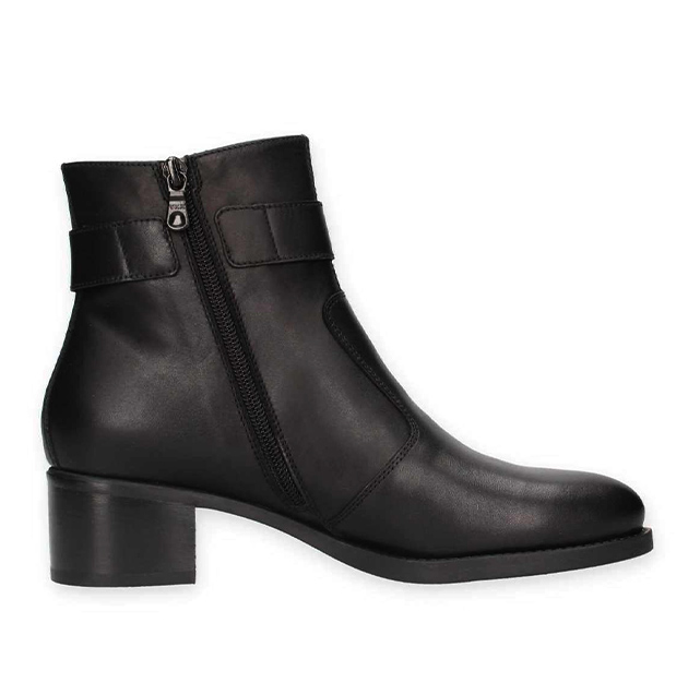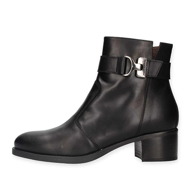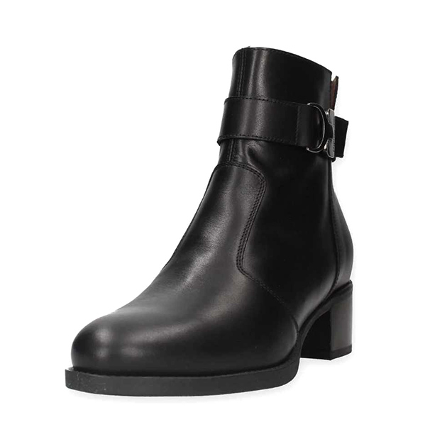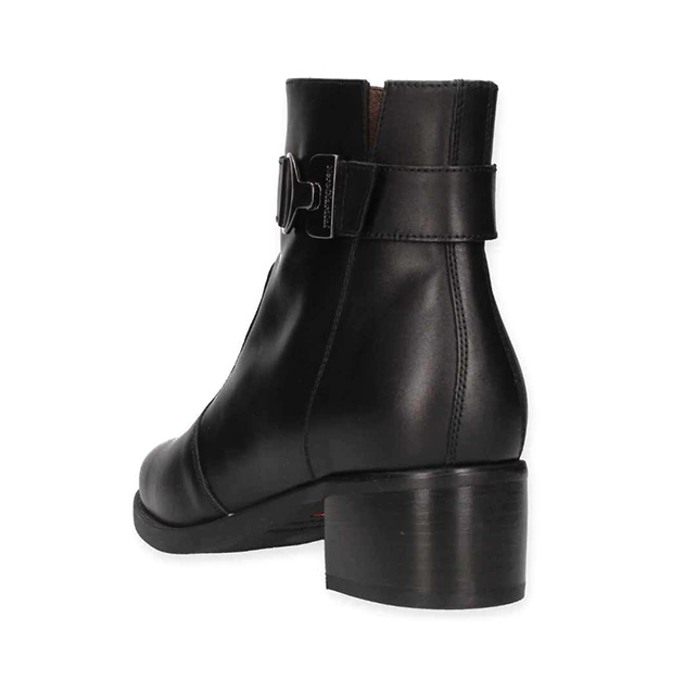Tronchetto Donna nero in pelle, con cinturino nero alla caviglia con inserto metal. Stile glam per questa scarpa adatta a tutti gli outfit. Made in Italy.