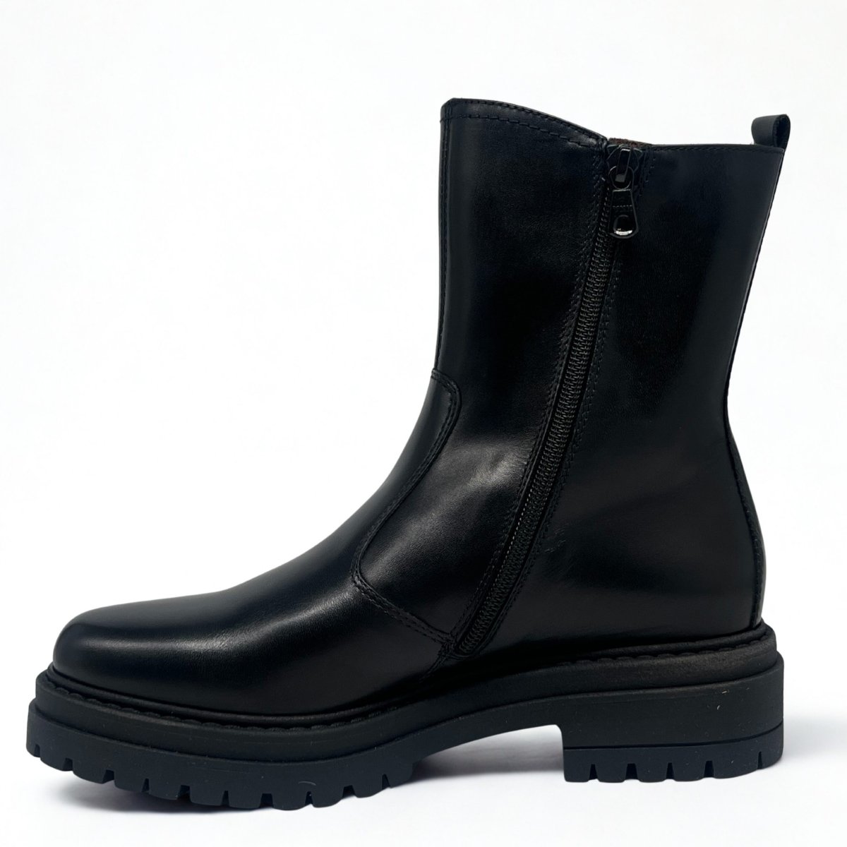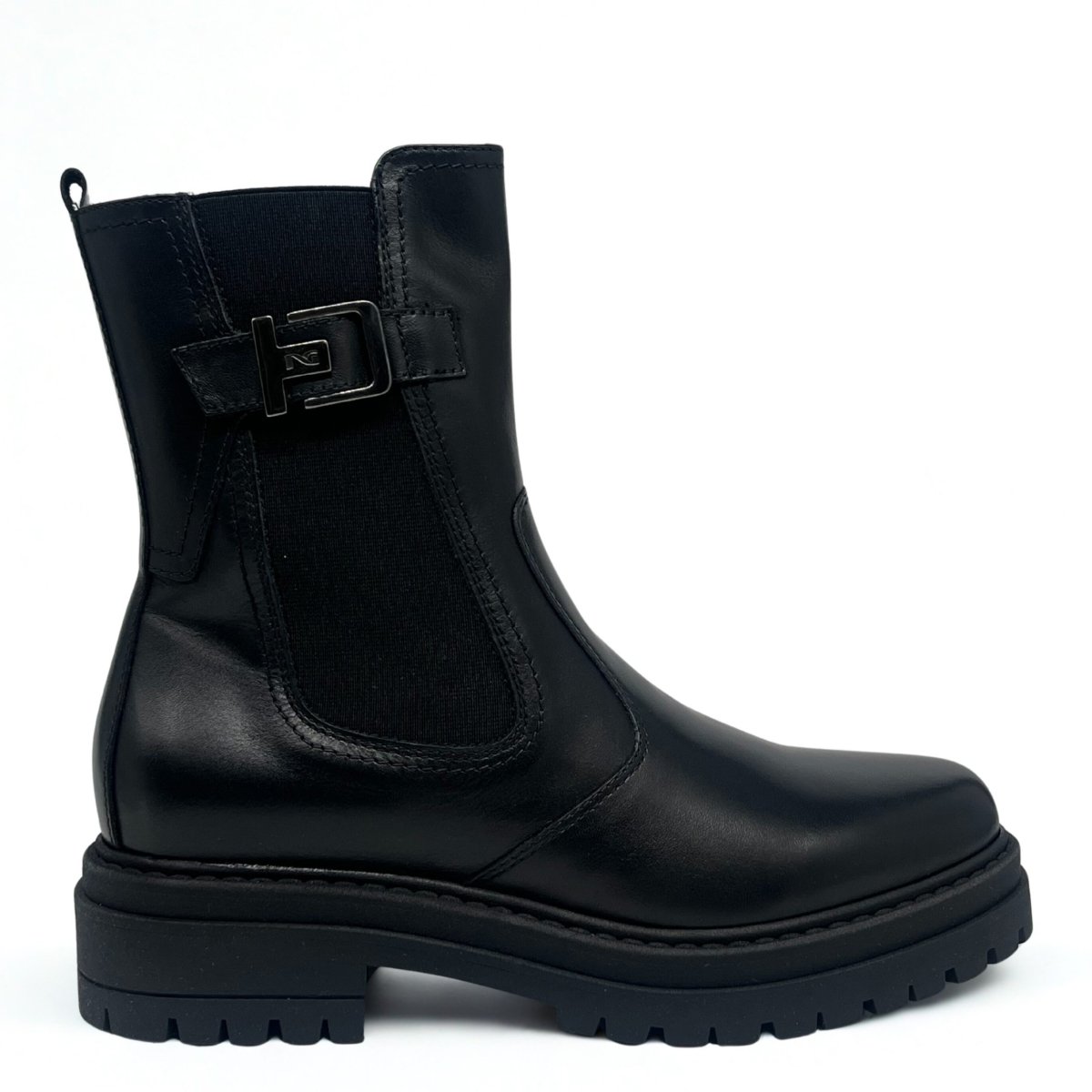 Tronchetto NeroGiardini in pelle nera dal design moderno e sofisticato. Un modello versatile e di carattere, ideale per completare con eleganza ogni look della stagione.