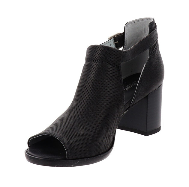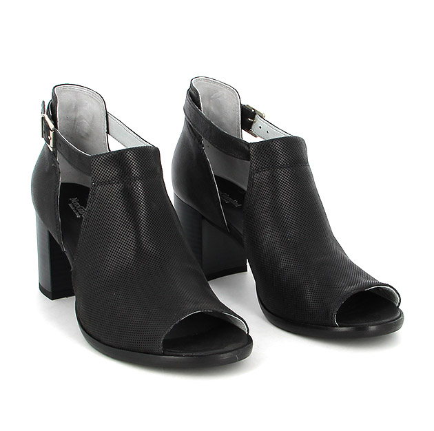 Tronchetto Donna open-toe nero in pelle, con lavorazione forata sulla parte anteriore. Design iconico per questo tronchetto da indossare tutto il giorno. Made in Italy.