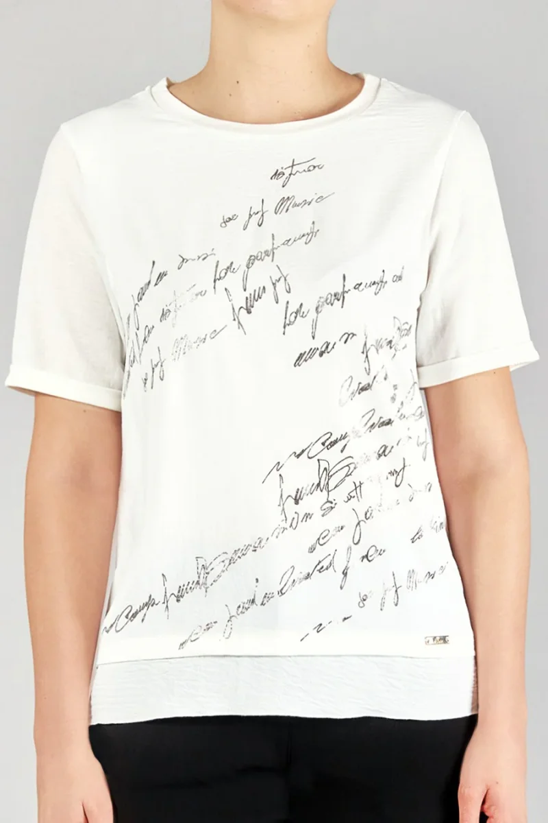 Casacca scollo a barchetta con stampa scritte lamè