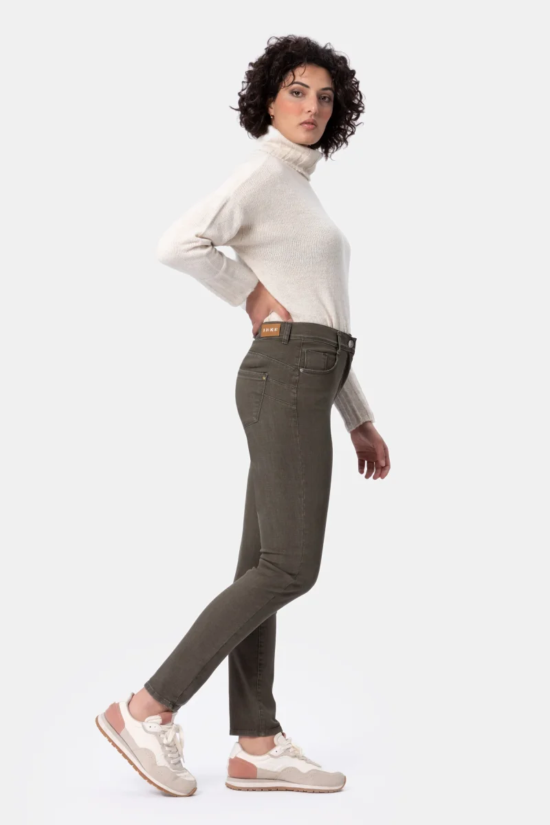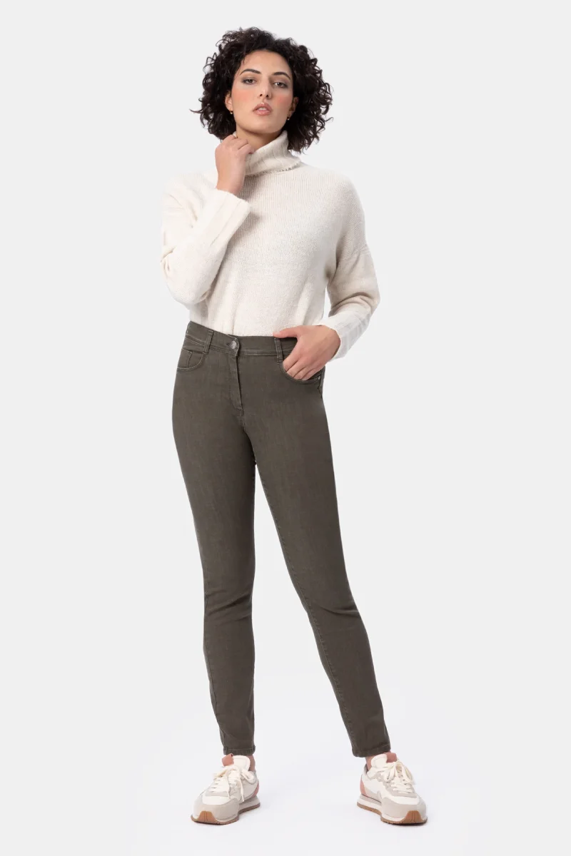 Jeans Donna Slim Push-upDenim stretch Peso tessuto: autunno/inverno Jeans push-up in denim beige di cotone super stretch con vestibilitร slim e vita regolare. L’elastico in interno cintura regala un comfort assoluto. Chiusura con bottone e zip. Dettaglio strass sulla tasca dietro per un tocco glamour. Dallโattitudine leisure questo pantalone si adatta a situazioni di quotidiano […]