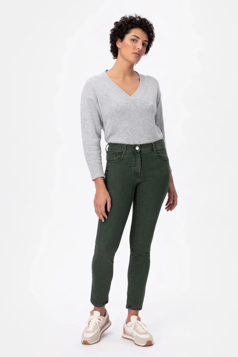 Jeans Donna Slim Push-upDenim stretch Peso tessuto: 4 stagioni Jeans push-up in denim green di cotone super stretch con vestibilitร slim e vita regolare. Chiusura con bottone e zip. Dallโattitudine leisure questo pantalone si adatta a situazioni di quotidiano e urbano con una scarpa bassa o a look piรน formali e fashion con tacco. I […]