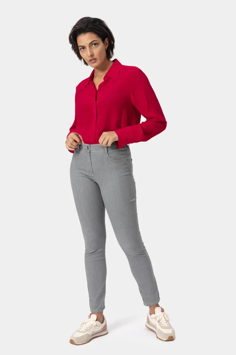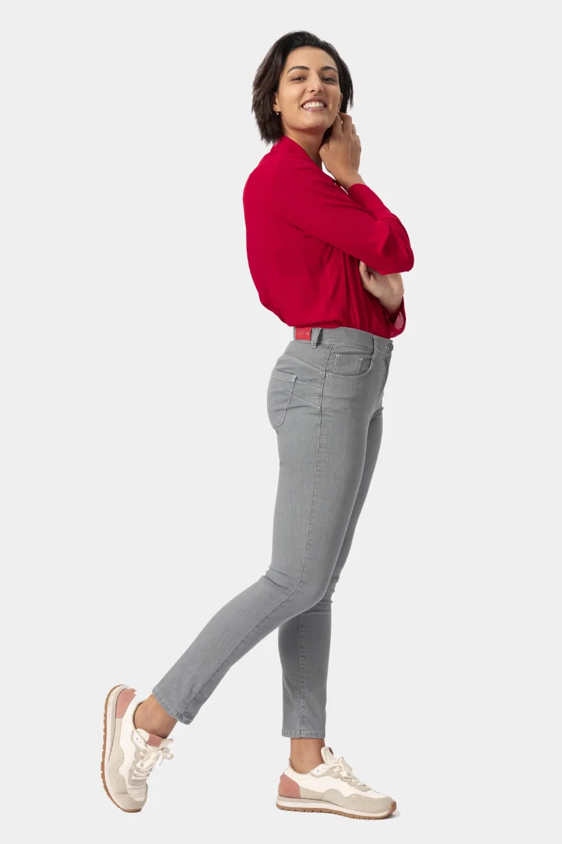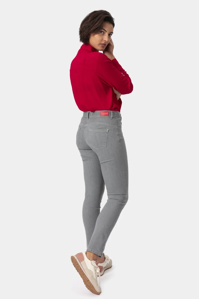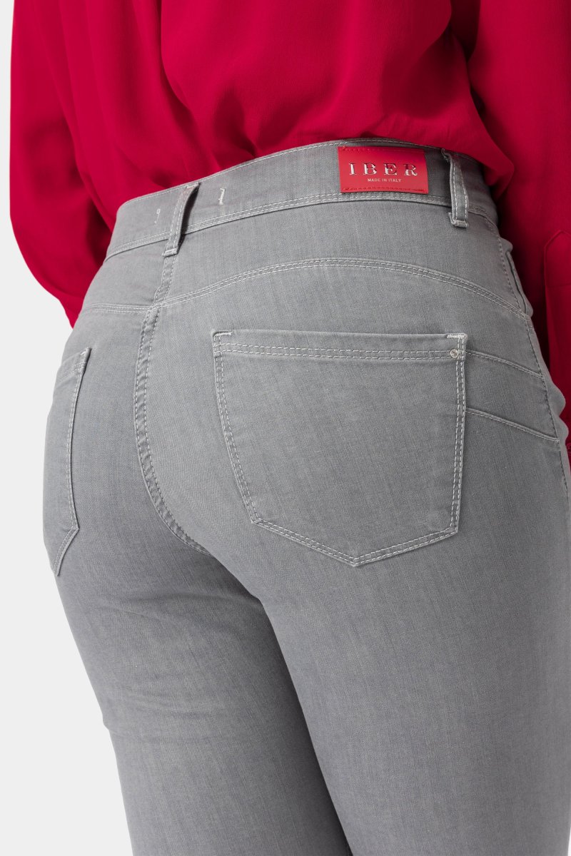 Jeans Donna Slim Push-upDenim stretch Peso tessuto: primavera/estate Jeans push-up in denim grey super stretch con vestibilitร slim e vita regolare. Chiusura con bottone e zip. Dallโattitudine leisure questo pantalone si adatta a situazioni di quotidiano e urbano con una scarpa bassa o a look piรน formali e fashion con tacco. I prodotti Iber nascono […]