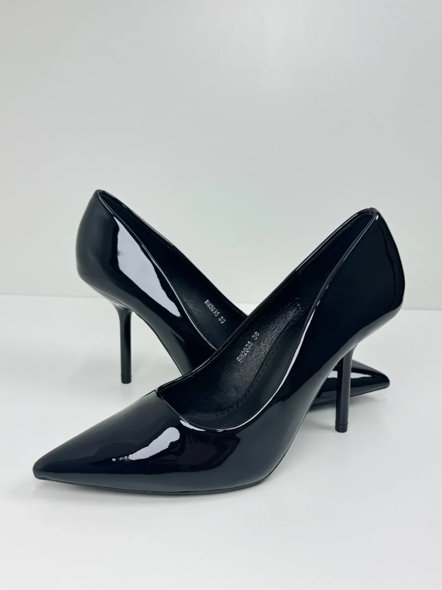 Le Décolleté Viola sono realizzate in lucida vernice, con un tacco a spillo che ti farà sentire sicura e sofisticata. Disponibili in colore Nero. Tacco 9 cm Calzata Regolare