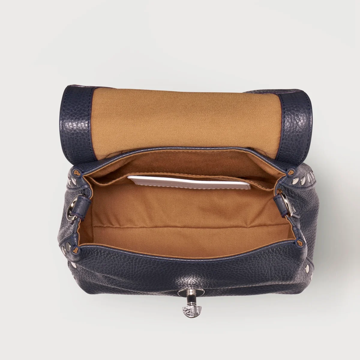 È versatile e resistente la Borsa Postina® Baby in pelle martellata con tracolla in pelle regolabile, perfetta per i tuoi daily look.