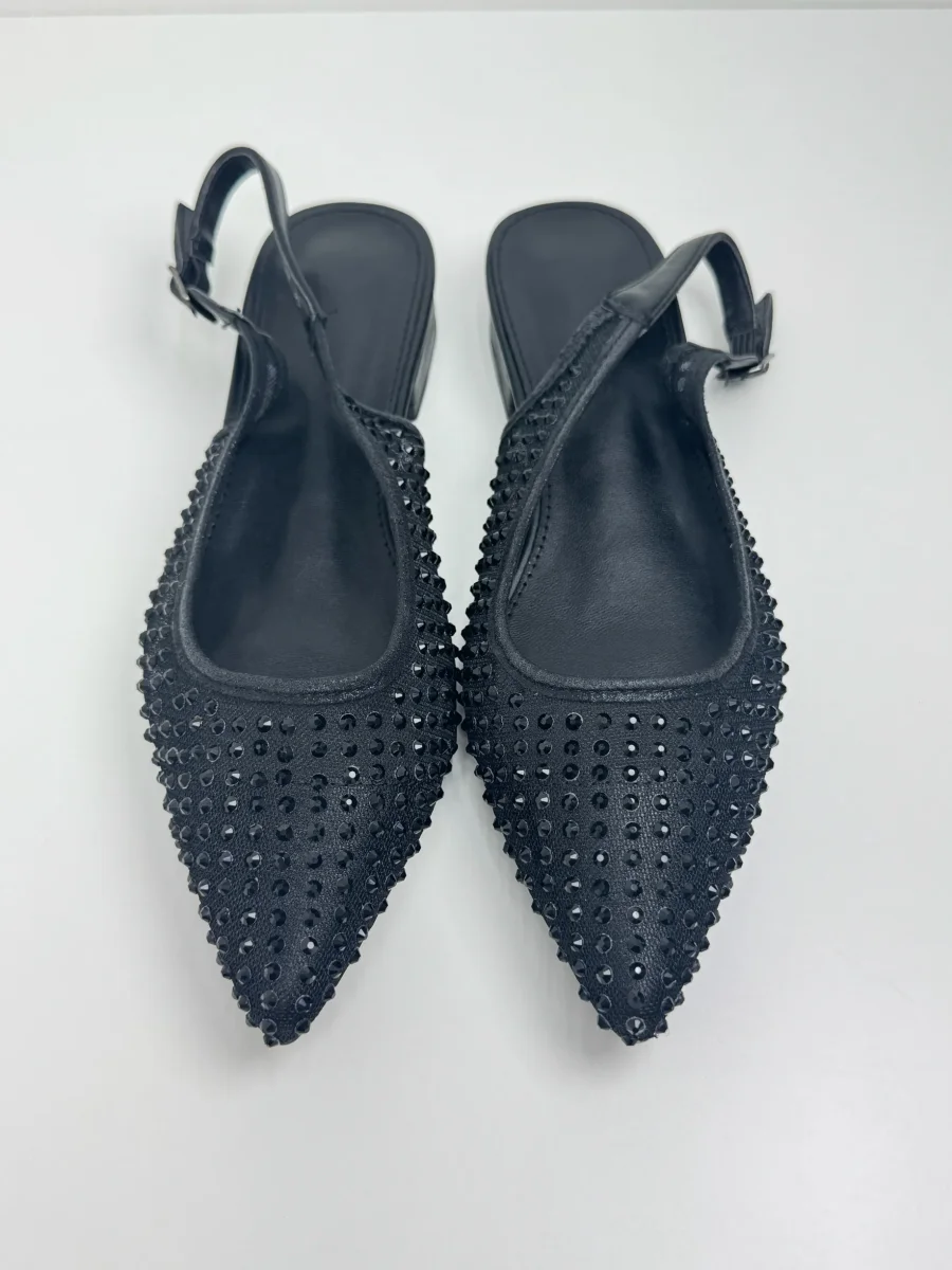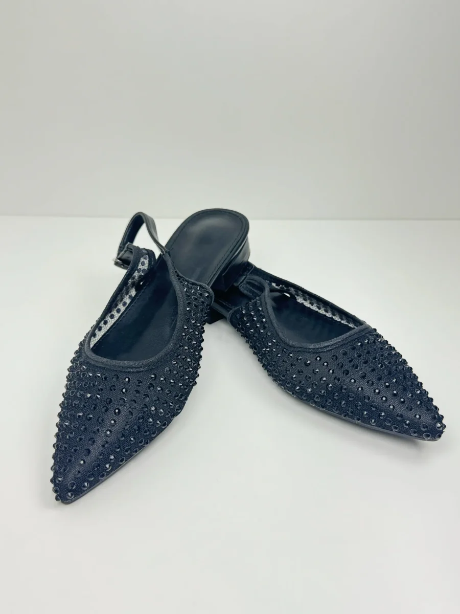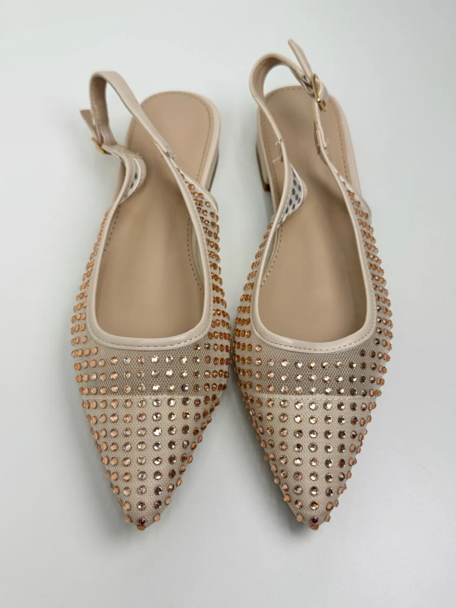 Le Ballerine Zeudi sono un must-have per chi cerca eleganza e raffinatezza. Realizzate in morbido raso e impreziosite da strass tono su tono, queste ballerine sono disponibili in due colori: Nero e Beige.