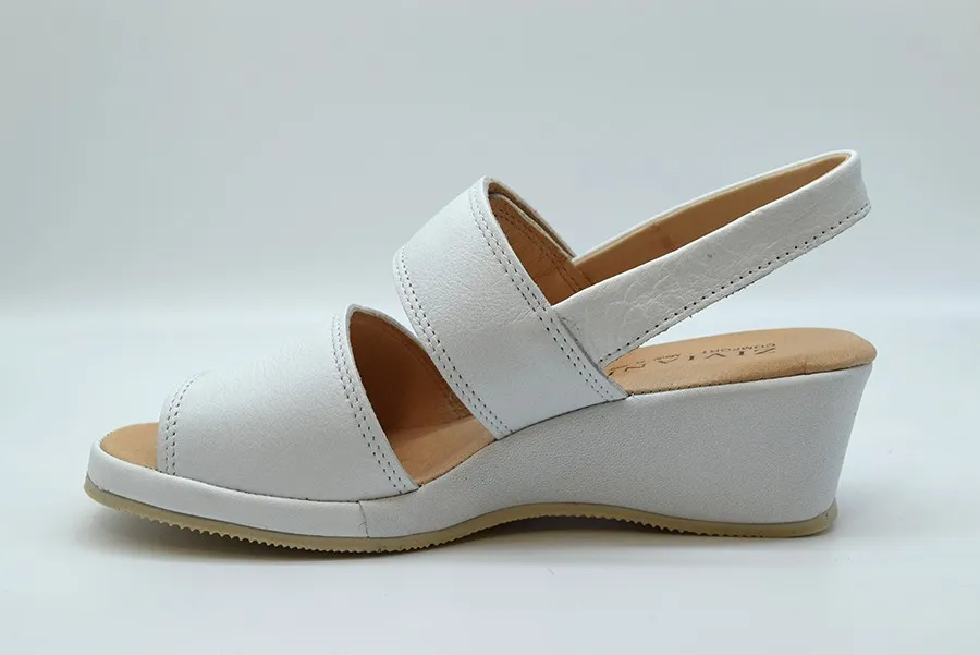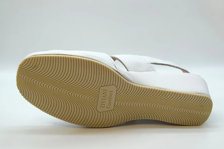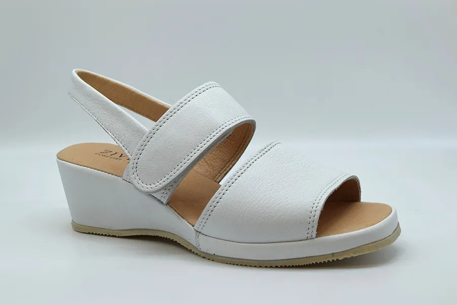 Ziviani Sandalo Due Fasce E Velcro Con Zeppa 5023 Vitello Bianco