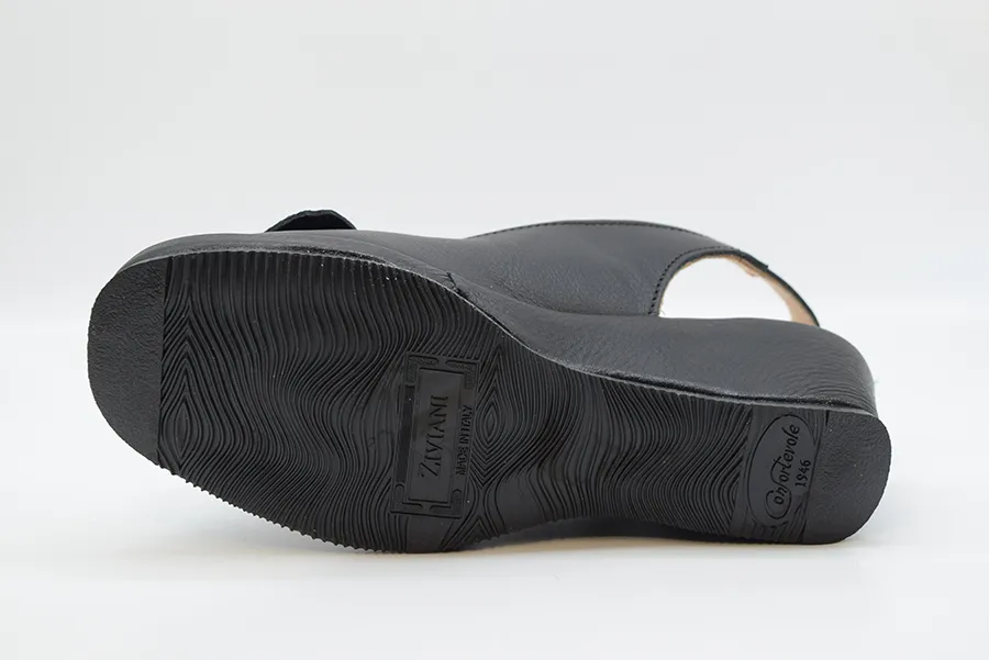 Ziviani Sandalo Scollato Con Zeppa Topolino 5004 Vitello Nero