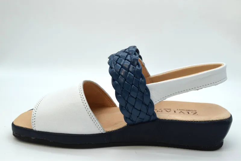 Ziviani Sandalo Treccia Fine 3081 Treccia Blu/vitello Bianco